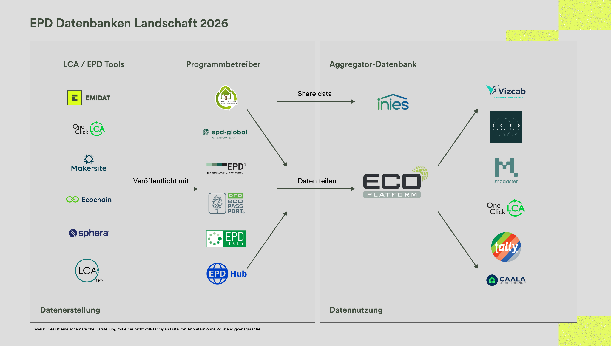 Die Datenbanklandschaft für EPDs sieht heute in etwa so aus: